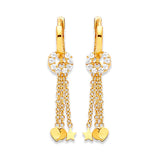 Heart Tassel Earrings with White CZ in 14K Gold