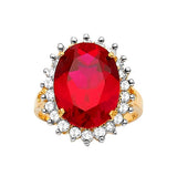 Red & White CZ Center-Stone Ladies Ring in 14K Two-Tone Gold