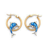 Dolphin Scallop Hoop Earrings with Blue Enamel in 14K Gold