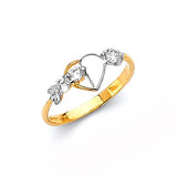 White CZ Heart Ladies Ring in 14K Two-Tone Gold