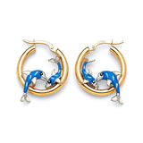 Dolphin Scallop Hoop Earrings with Blue Enamel in 14K Gold