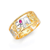 Red & White CZ Lucky Charm Ladies Ring in 14K Two-Tone Gold