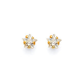 Stud Earrings with White CZ in 14K Gold and Screw Backing