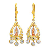 Guadalupe Chandelier Earrings with White CZ in 14K Tri-Color Gold
