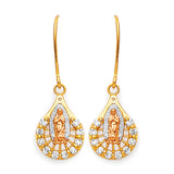 Guadalupe Drop Earrings with White CZ in 14K Tri-Color Gold