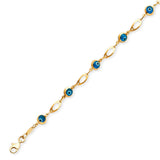 Beaded Blue & White Enamel Ladies Eye Charm Bracelet In 14K Gold