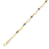 Beaded Blue & White Enamel Ladies Eye Charm Bracelet In 14K Gold