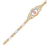 Filigree White CZ Ladies Bracelet In 14K Tri-Color Gold