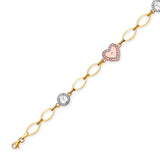 White CZ Ladies Key Charm Bracelet In 14K Tri-Color Gold