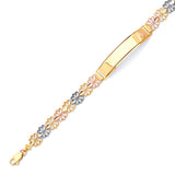 Fancy Ladies Border ID Bracelet In 14K Tri-Color Gold