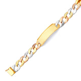 Cuban Mens Border ID Bracelet In 14K Tri-Color Gold