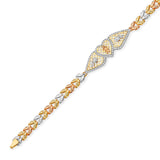 Fancy White CZ Ladies Bracelet In 14K Tri-Color Gold