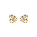 Ribbon Stud Earrings with White CZ in 14K Gold and Butterfly Backing