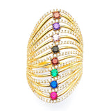 Multi-Color CZ Full-Finger Ladies Ring in 14K Gold