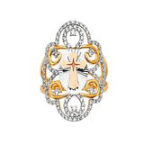 White CZ Cross Full-Finger Ladies Ring in 14K Tri-Color Gold