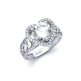 White CZ Center-Stone Ladies Ring in 14K White Gold