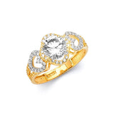 White CZ Center-Stone Ladies Ring in 14K Two-Tone Gold