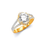 White CZ Center-Stone Ladies Ring in 14K Two-Tone Gold