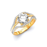 White CZ Center-Stone Ladies Ring in 14K Two-Tone Gold