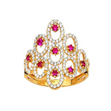 Red & White CZ Multi-Stone Ladies Ring in 14K Gold