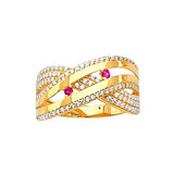 Red & White CZ Micro-Pave Ladies Ring in 14K Gold