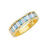 Blue & White CZ Channel Ladies Ring in 14K Gold