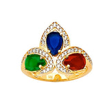 Multi-Color CZ Three-Stone Ladies Ring in 14K Gold