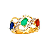 Multi-Color CZ Three-Stone Ladies Ring in 14K Gold