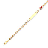 6" inch Beaded White CZ Enamel Kids Bear Charm ID Bracelet In 14K Gold