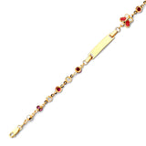 6" inch Beaded White CZ Enamel Kids Butterfly Charm ID Bracelet In 14K Gold