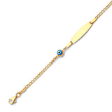 6" inch Blue & White Enamel Kids Eye Charm ID Bracelet In 14K Gold