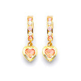 Heart Drop Huggie Earrings with Pink & White CZ in 14K Gold