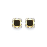 Stud Earrings with White CZ and Onyx in 14K Gold and Butterfly Backing