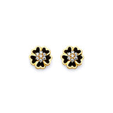 Flower Stud Earrings with White CZ and Onyx in 14K Gold and Butterfly Backing