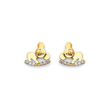 Bear Stud Earrings with White CZ in 14K Gold and Butterfly Backing