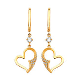 Heart Drop Earrings with White CZ in 14K Gold