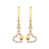Heart Drop Earrings with White CZ in 14K Gold