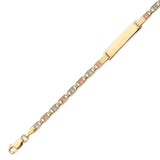 6 inch Valentino Kids ID Bracelet In 14K Tri-Color Gold