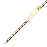 Figaro Ladies Border ID Bracelet In 14K Tri-Color Gold