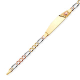 Figaro Ladies Heart Border ID Bracelet In 14K Tri-Color Gold