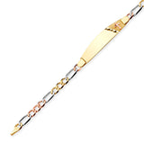 Figaro Ladies Cross Border ID Bracelet In 14K Tri-Color Gold