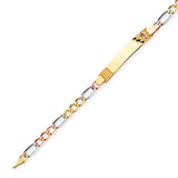 Figaro Ladies Cross Border ID Bracelet In 14K Tri-Color Gold