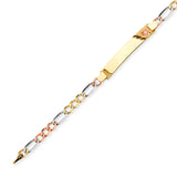 Figaro Ladies Butterfly Border ID Bracelet In 14K Tri-Color Gold