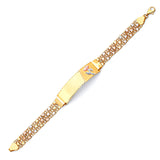 Mexican Ladies Heart Border ID Bracelet In 14K Tri-Color Gold