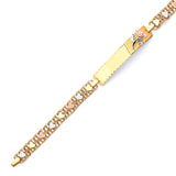 Mexican Ladies Heart Border ID Bracelet In 14K Tri-Color Gold
