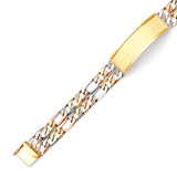Figaro Mens Border ID Bracelet In 14K Tri-Color Gold