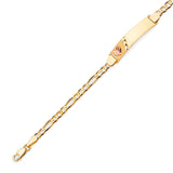 6" inch Figaro Kids Heart Border ID Bracelet In 14K Two-Tone Gold