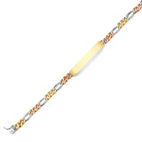 Figaro Mens ID Bracelet In 14K Tri-Color Gold