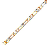 Figaro Mens Link Bracelet In 14K Tri-Color Gold