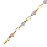 White CZ Ladies Heart Charm Bracelet In 14K Tri-Color Gold